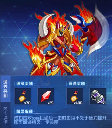 这关可以上两只精灵,解法也很多,我是速度史莱姆先消强,然后用到死,再上克制系打死BOSS