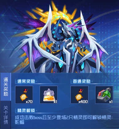 至少登场2只精灵则可解锁“影蝠”(还可以解锁第3个出战精灵格子)