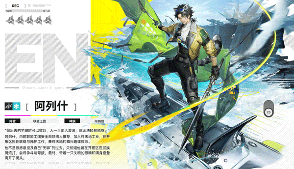 没有家人的游人,在奥里莎师者的引荐下加入终末地,担任外勤干员,负责前线探索和情报传递等工作。