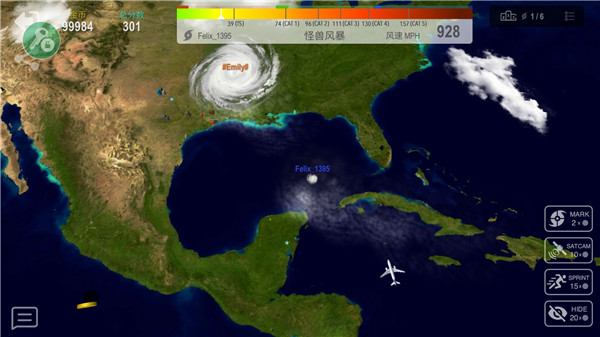 飓风大作战是一款玩法别致的休闲游戏,游戏中玩家在开局是一团不起眼的云,在后期的目标成长为超级飓风。在过程中玩家需要不断吸取地球上的能量,还要去面临强大竞争者,他们无时无刻想要吞食你。在飓风大作战中,陆地还有应对防范措施,他们会发射导弹消减你的能量你的能量来源是空气中或海面上的水和热能。