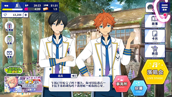 偶像梦幻祭2拥有几百种不同的音乐内容可以挑战其中的音乐,非常丰富。玩家可以根据自己的喜好快速进行选择,在游戏的过程中还可以获得更多的资源,让你可以对自己的卡牌进行提升。