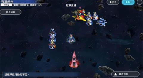 第三回合自由MAP打X钢战舰,其他人站空隙打恶魔后EXIA收头,1.5钢打X钢战舰触发三个援护DEBUFF并降攻光荣牺牲(千万不要贴身不然对面会防御)。