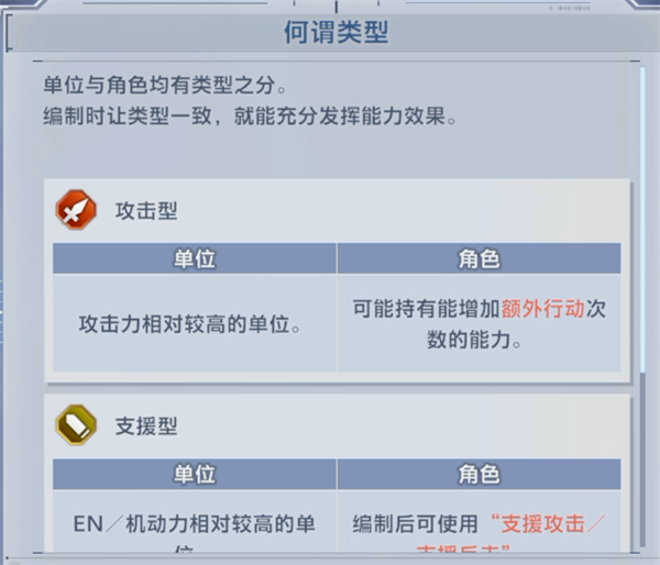 高达一共有攻击、支援、耐久三种类型高达,前期建议以攻击型、支援型高达作为主要培养对象来帮助开荒推图。