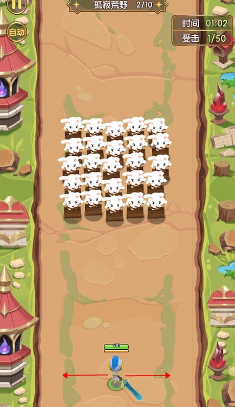 一直点击屏幕还可以提高英雄的攻击速度,如果玩家不想自己动手也可以点击左上角的自动,让游戏人物自动攻击。