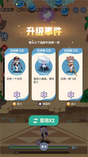 2、进入关卡后角色会自动攻击敌人,击败敌人可以获得经验来提升等级。