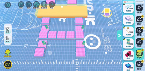 【地形组件】是构成关卡地图的基本组件,通过单指拖拽将地形组件放置在场景中,通过
