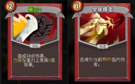 如果你拿到核心牌,那么你就需要拿爆发牌,也就是跟力量核心联动的《重刃》,跟格挡联动的《全身撞击》