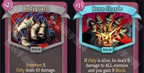 碎骨:如果奥斯提存活,则其对所有敌人造成9点伤害且你获得9点格挡。奥斯提死亡。