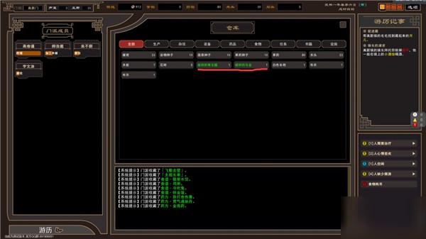 2、之前序章拿到的东西只有在仓库点了收藏之后才能使用,其实吃米饭就够了,所以其他的食谱都是可以拿去卖掉的。如果发现仓库里面没有书籍,可能是序章没有拿或者是出现了bug,务必乘早重开
