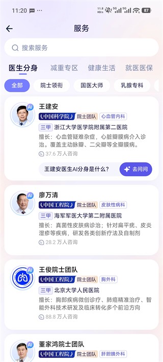 医生 AI 分身在线,一键发起健康咨询,随时获取专业解答。
