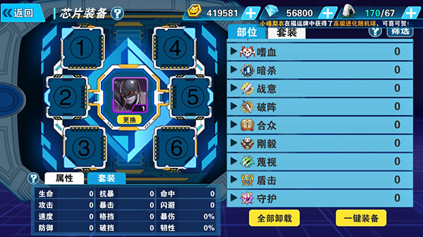 4、还可以给数码兽安装芯片装备,提高属性战力。