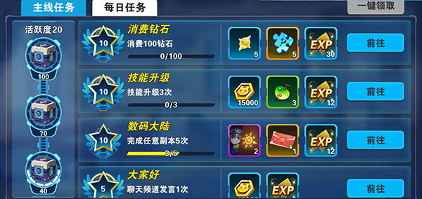 3、游戏内还有丰富的主线和每日任务,完成任务可以获得丰富资源奖励,加快章节解锁速度。