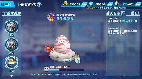 4、游戏内还有每日孵化蛋,每天都能孵化数码蛋,获取高级数码兽。