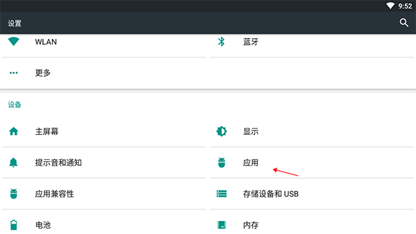 2、点击“设置”列表中“管理应用程序”;