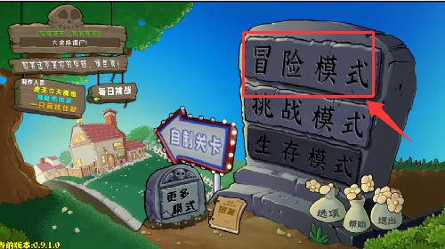 1、进入游戏点击红色框框里的冒险模式。