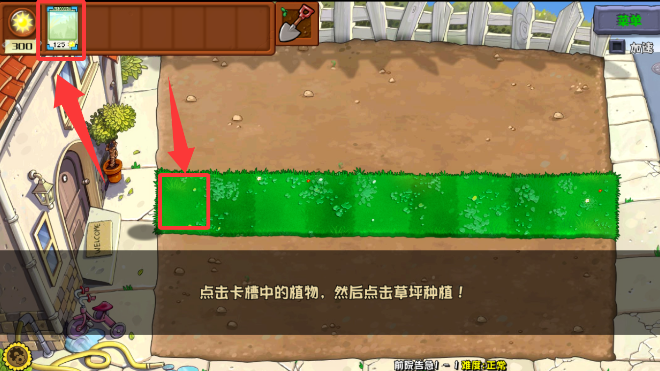 3、点击卡槽里的植物然后点击草坪里种植就可以了。