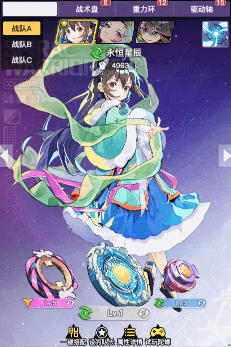 二、初始陀螺组装 - 在游戏初期,利用“一键搭配”功能快速上手。这个智能系统会根据你现有的战术盘、重力环以及驱动轴,为你量身定制一套合理的陀螺组合,助你迅速构建起战斗的基础。