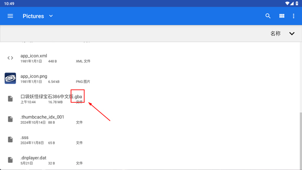 2、接着在手机文件夹找到要导入的gba游戏,需要玩家自己下载准备(后缀为.gba的文件)