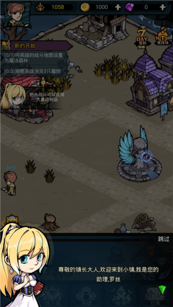 1、打开佣兵小镇最新版游戏之后,我们直接点击屏幕进入游戏;