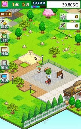 建筑设施主要分为环境建设、公共设施建设、游玩设备建设、园区环境建设,玩家通过npc给的钱进行园区布局,首先大家需要先建立广场,先让游客可以进来,然后收到一定费用时再将园区进行美化,建造一个适于人们生活的环境。后期美化包括互动性元素添加、动物园动物召唤等。