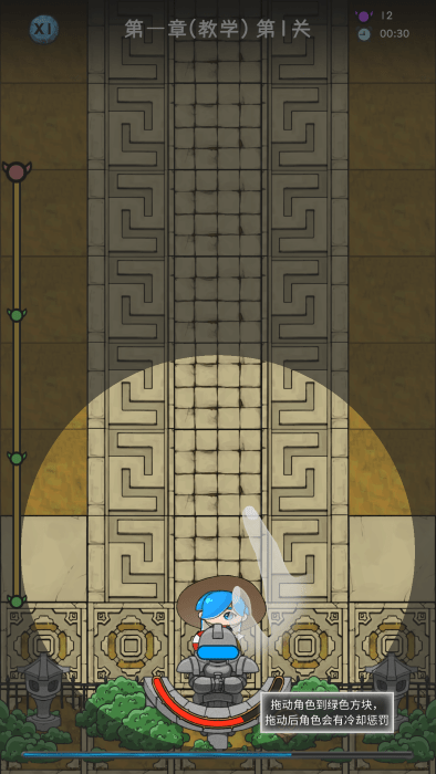 把角色拖到上面方块绿色的地方,每一次拖动都有冷却时间的。