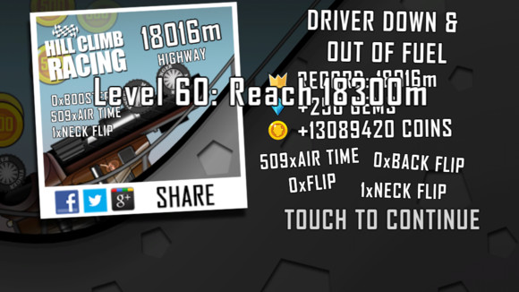 游戏中最难的一点莫过于控制车子飞跃的角度,稍不留神就有可能翻车,因此要知道如何操控车子非常的重要。当汽车飞跃起来的时候玩家如果车头朝上就要按刹车来调整平衡,同理车头朝下的时候要按油门进行调整。尽量以点按的方式来进行,这样更容易调整;另外建议在下坡前玩家可以按刹车来减速,这样才能保持车子的稳定。