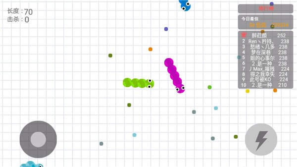 7、每局比赛中一共有十个玩家,一局时长为三分钟。玩家在收集欢乐币的同时也要注意别被其他玩家击杀,被击杀会失去所有已收集到的和本身投注的欢乐币。海盗蛇会携带大量欢乐币,要记得小心消灭对方。在游戏中还会随机刷新道具,要注意抢先下手。
