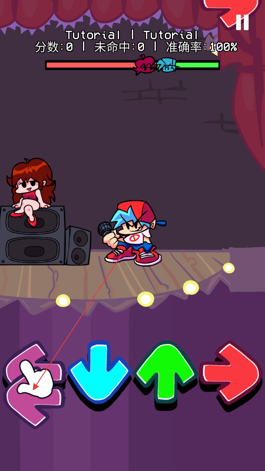 2、游戏过程中,屏幕下方会出现不同颜色和方向的箭头,在箭头到达指定区域时,及时点击对应的箭头按键,进行操作。