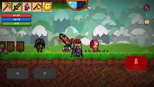 游戏的操作也十分简单,采用了固定按键控制的操作方式,屏幕左下角按钮可以控制主角左右移动,右下角则有攻击、跳跃按钮,屏幕右上角还有制造和提升按钮,对于一般玩游戏的玩家来说,这些操作点都非常简单易于掌握的。