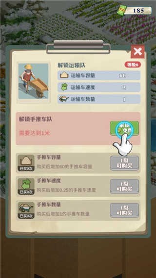 2、解锁运输队,运输队第一次解锁是免费的,后续要花费钞票