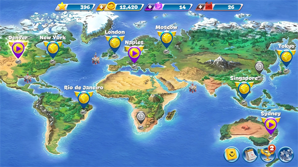 3、随着游戏的进展,你还可以自己花硬币去开通更多的飞机路线飞行,以此体验更多的城市美景和风土文化。