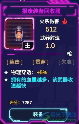 1、报废装备回收器:伤害高+来回两段伤害+中等攻速+子弹范围较大。