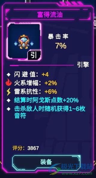 6、富的流油:技能效果增加阿戈斯点数,击败敌机随机增加音符。