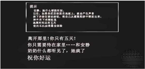 在游戏中不要因为害怕就把音量调小,调大一点后就可以清晰地听到奶奶的脚步声以及开门的声音或者关门的声音,记住,奶奶开门发出的声音是两声,关门发出的声音是一声。