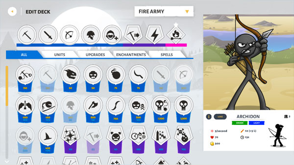 游戏的操作方法还是很简单的,主要就是创造士兵,防守或者升级士兵就可以了。在玩的时候我们要注意一些必须先造出来的东西。 在火柴人战争遗产3游戏刚刚开始的时候我们要先把工人造出来,这是为了让我们能够积攒金币来造就别的士兵,一开始就造士兵的话我们就没有经济来源了,一个士兵肯定是打不过全部的敌人的,所以我们要合理运用分配资源。