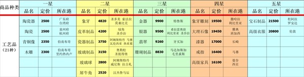 一、商品种类,分别是(一星、二星、三星、四星、五星排名)