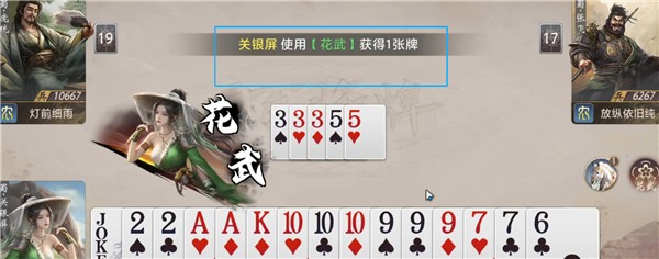 4、出牌后,因为名将技能是任意玩家出5张牌后,可获取JQK中一张卡牌,因此得到了一张卡牌,其他玩家出牌也同样获得。