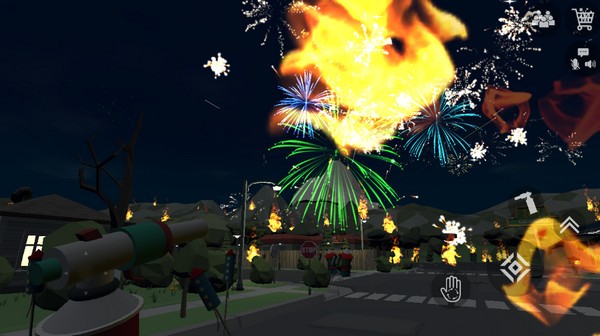 3、点击图中的点火装置,对准你想点燃那颗烟花发射一下,即可点燃烟花,点击图中右上角的购物车即可购买自己喜欢的烟花,烟花种类繁多;