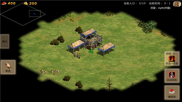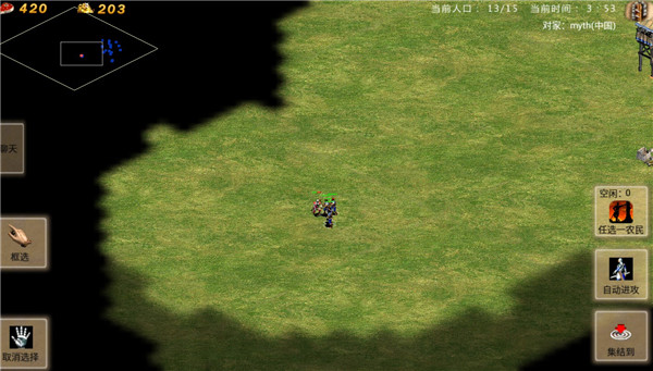 3、进入游戏,可以单选农民也可以点击框选按钮,选择范围内农民