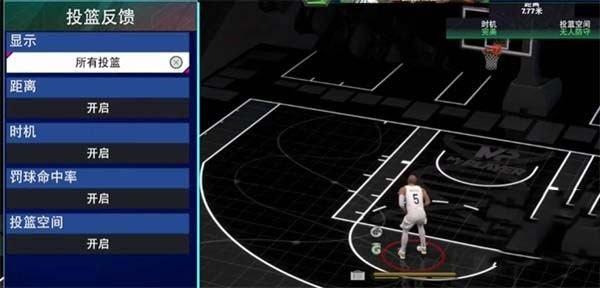4、在右摇杆往下拉的,快投篮的时候往上拨,就会出一个投篮节奏,几乎是必进的。