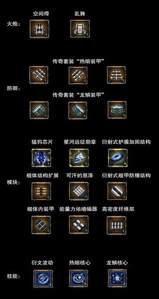 舰体的独有技能为【凤凰之心】战舰保护系统:在战舰濒死时,自爆并击破2000范围内所有敌方舰船的离子护盾和增强装甲,然后重组舰体并提升100%的攻击。因此,可以确定该舰体的核心玩法方向:即选择毁灭系技能属性的装备来提高舰体技能的输出伤害。