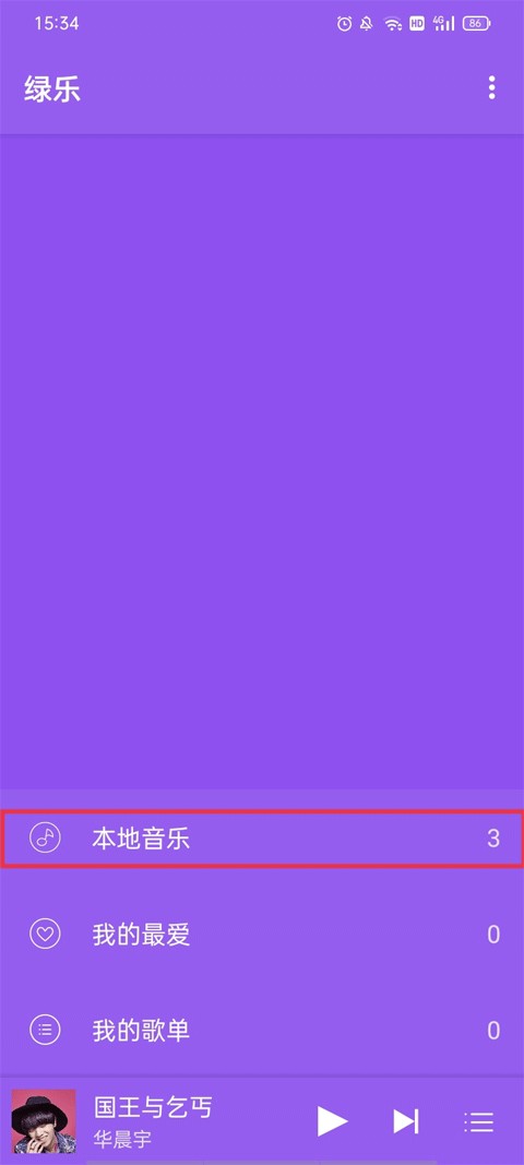 1、你只要打开绿乐app并进入主界面,就会自动扫描你手机内存中保存的歌曲并添加到应用程序中。
