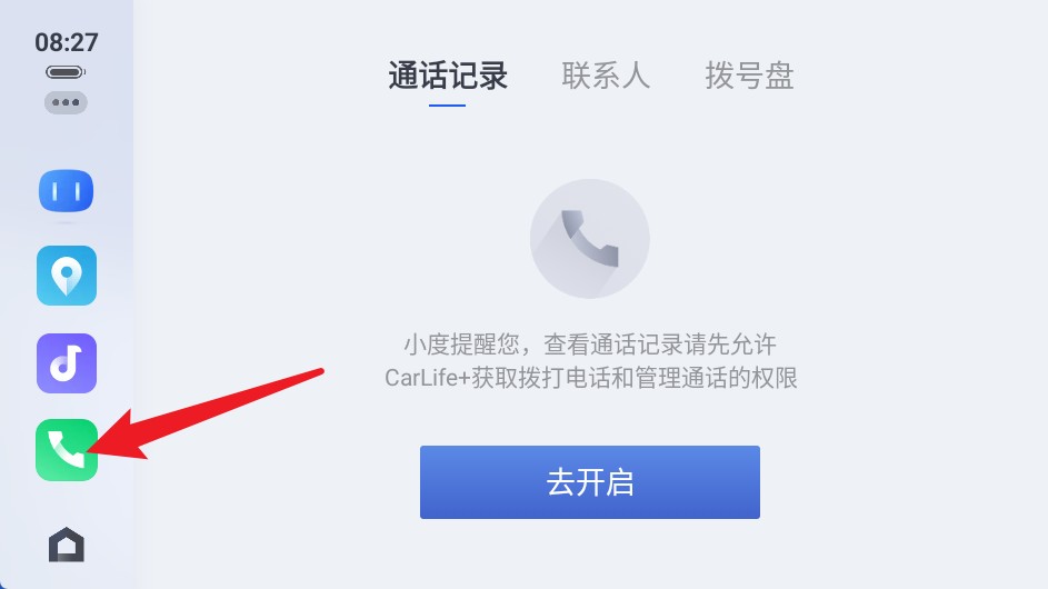 2、点击左侧绿色电话图标,可进入通话记录页面,需授权后方可使用拨号和通话管理功能。