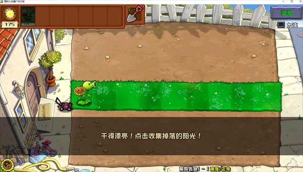4、收集阳光,点击卡槽中的植物,然后点击草坪种植!