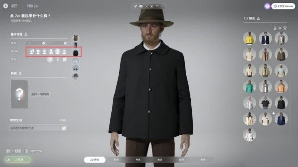 2.之后可以创建你的专属角色(zoi),规划角色的出生基本信息和角色外观模型参数