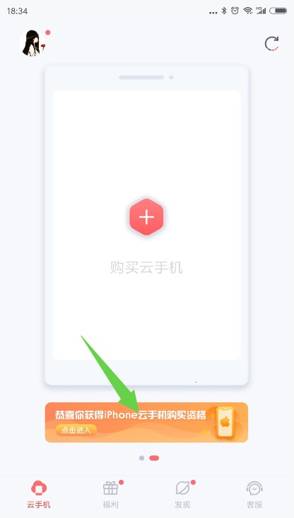另外,点击个人头像,进入用户中心,也可以点击“购买云手机”呼出云手机购买功能栏。