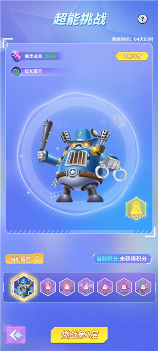 超能挑战有瓶类道具、消除道具、武器道具、天气攻击、投射器五种玩法,不同玩法可以获得对应的增益效果,面对的首领也各不相同。超能挑战有休闲、普通、困难、噩梦4种难度,根据能力去挑战,获得积分,每周结算领取丰厚奖励!