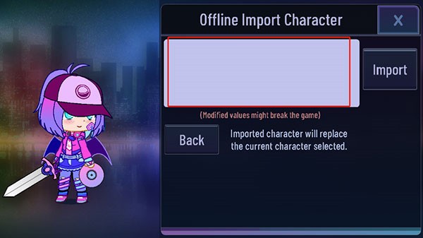 4、然后输入“月希羽(洛诗语)|6.5||||blue||China|Not good at wor,最后点击“Import”即可