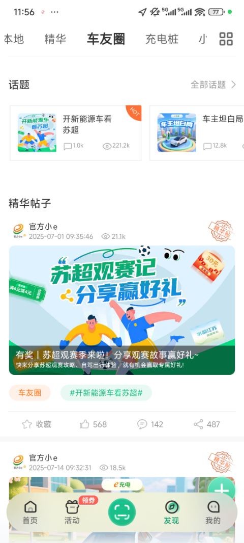 5、在"e友车圈"板块可以分享用车心得,获取最新行业资讯,参与专属优惠活动,与全国车友共建绿色出行生态。
