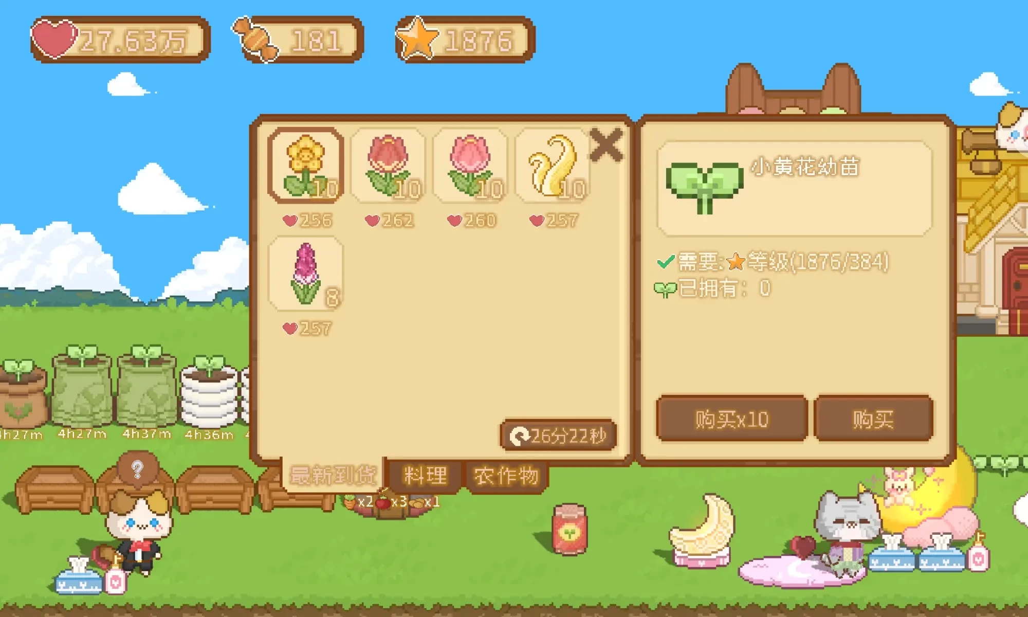 细细规划菜谱,安排村民浇花宣传上架,恰好时间点上线收菜种菜做菜谱上架售卖,结果半天挣不了几十万,自己和动物们还累的半死,大家都没得到休息。